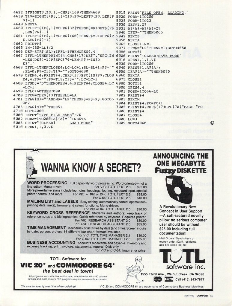 Compute! Magazine, April 1983, page 50.